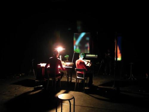 intérpretes; estos son proyectados sobre diferentes pantallas